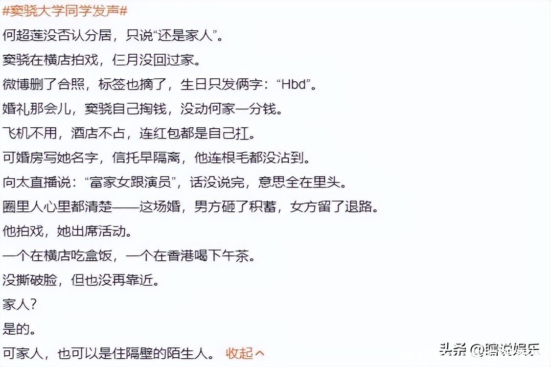 而何超莲的一句“不需要通过任何形式向外界事无巨细的展示来证明两人的感情”。