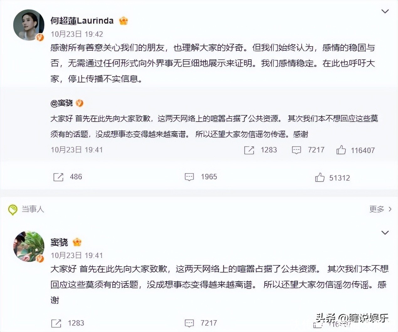 几乎是什么谣言都能往这件事上扯,两人也终于坐不住出面澄清了。